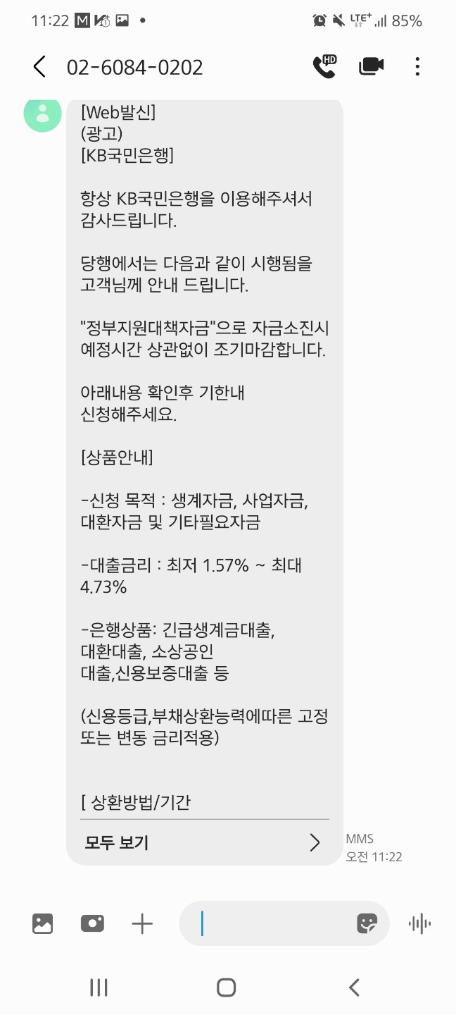 최근들어 정부지원으로 대출(생계금 대환대출 소상공인 등)해준다고 문자가 많이 오는데요