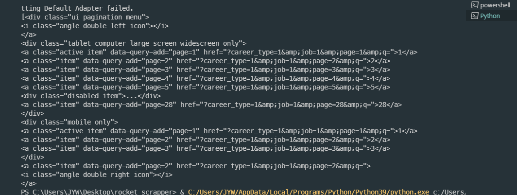 노마드코더(nomadcoder.co)에서 니꼬쌤에게 배운 파이썬으로 혼자 로켓펀치 스크래퍼를 만들어봤다.