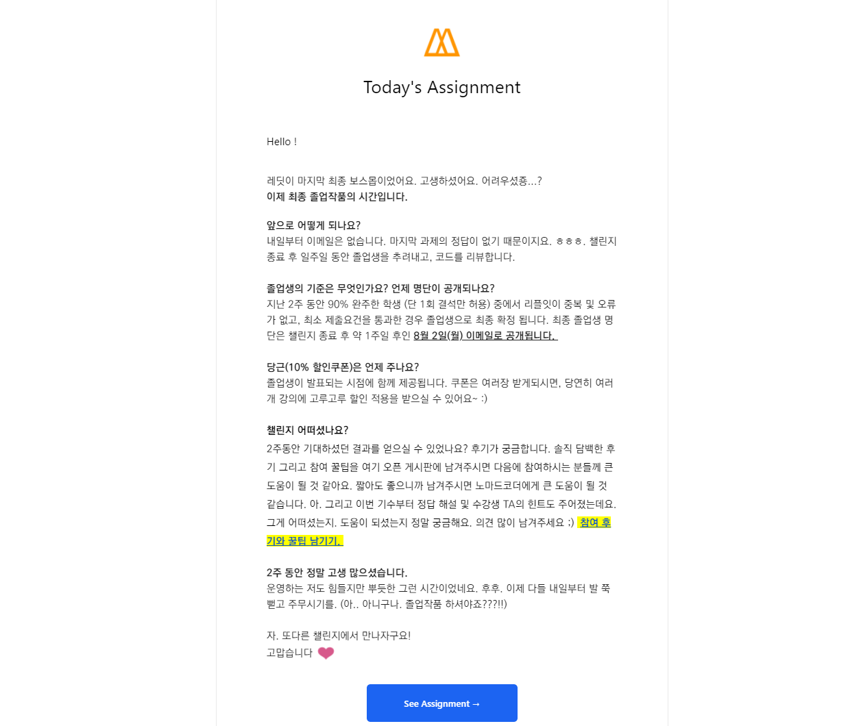 마지막 과제를 제출하는 순간은 어쩌면 수료증을 받았을 때보다 더 짜릿한것같다.