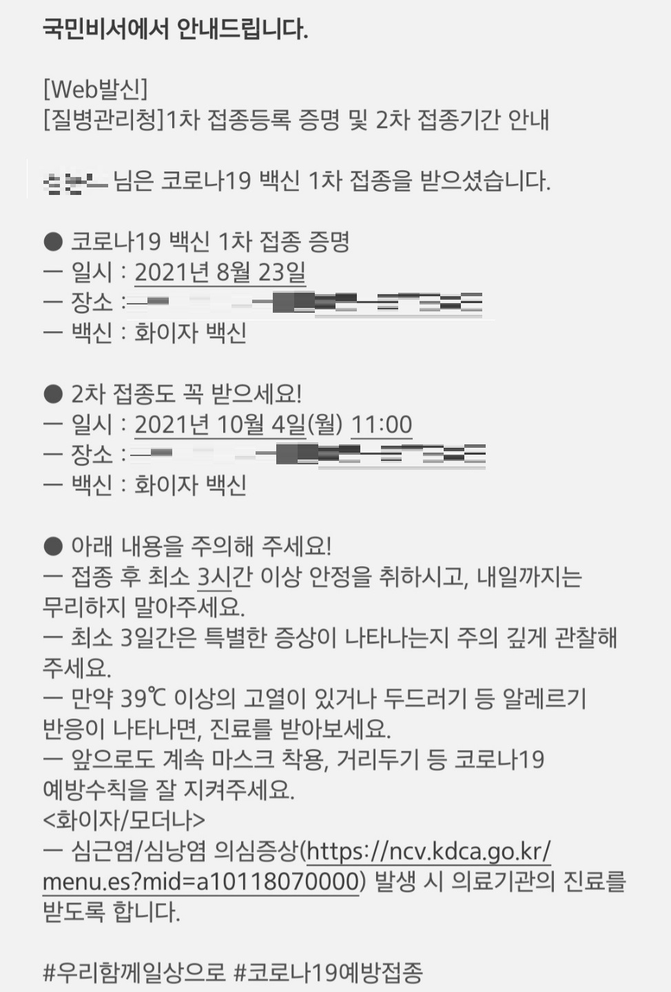 백신접종 후 문제없이 잘 넘어갔으면 좋겠다.