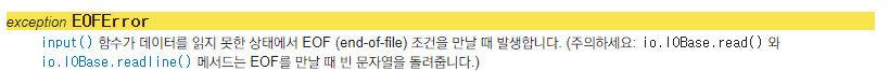 while 반복문이 끝날 조건이 없는 상태에서 input이 빈 데이터를 받은 경우 발생하는 듯하다.