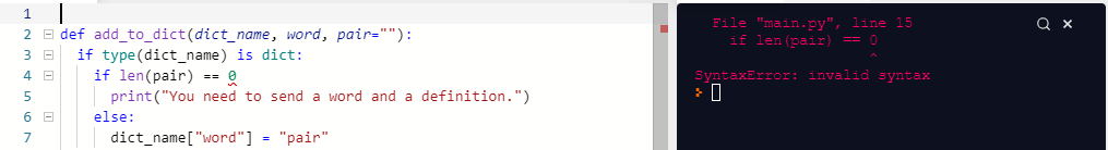 함수내에서 dict_name[word] = definition은 왜 되지 않는지 원인을 찾고 등등.. 내 부족함이 너무 많이 보였다.